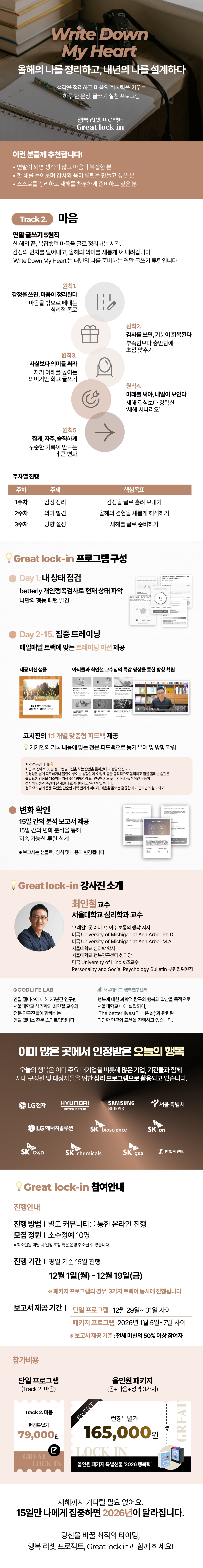 본 과정은 Great Lock In 프로젝트의 3가지 트랙 중 하나인 '마음'을 집중적으로 다루는 프로그램입니다.